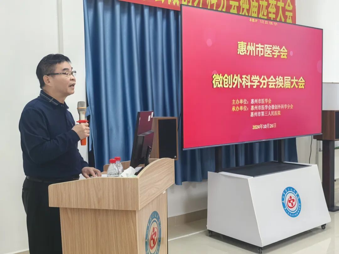 2024年10月26日,惠州市醫(yī)學(xué)會(huì)微創(chuàng)外科分會(huì)換屆選舉大會(huì)在惠州市第三人民醫(yī)院召開(kāi),會(huì)議由惠州市醫(yī)學(xué)會(huì)賴崇金秘書(shū)長(zhǎng)主持。