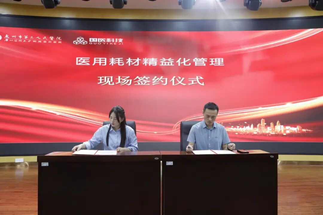 隨后,SPD服務(wù)商安徽中技國(guó)醫(yī)醫(yī)療科技有限公司商務(wù)總監(jiān)孫莉與供貨商代表惠州市森暉科技有限公司總經(jīng)理梅松簽署收費(fèi)協(xié)議,標(biāo)志著惠州三院SPD項(xiàng)目建設(shè)全面啟動(dòng),順利進(jìn)入簽約收費(fèi)階段。