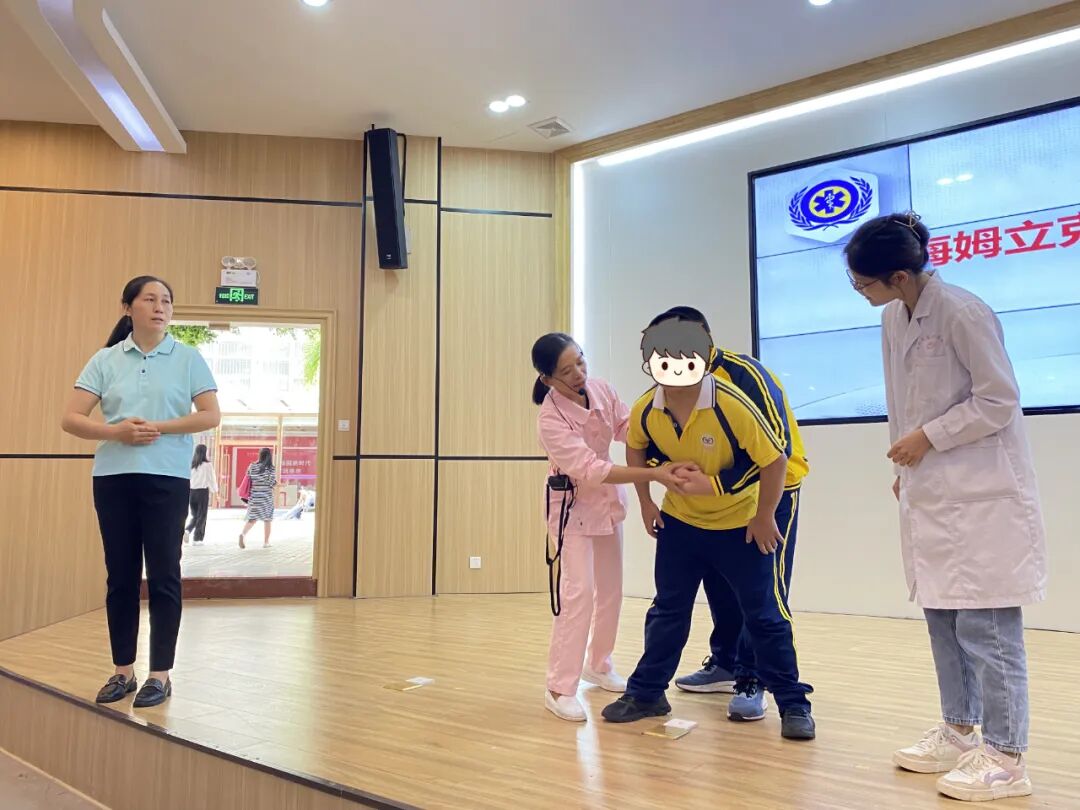 周海燕護(hù)士和李昕昕護(hù)士生動(dòng)形象地向孩子們演示了什么是海姆立克急救法和心肺復(fù)蘇術(shù),以及它們在緊急情況下的重要性。