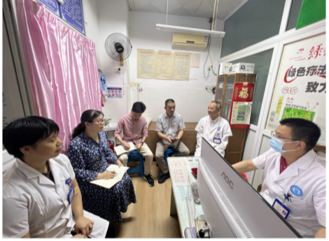 座談期間,一名在診所進行康復(fù)治療的七旬老年患者前來復(fù)查?;颊叻从畴m然整體康復(fù)進展良好,但仍持續(xù)出現(xiàn)大腿麻木與脹痛的癥狀。診所負(fù)責(zé)人隨即邀請惠州三院骨科專家李賢坤主任進行現(xiàn)場會診指導(dǎo)。李賢坤主任在咨詢病情及觸診檢查后,為患者制定了一套針對性的治療方案,并建議若癥狀未有明顯改善,患者應(yīng)前往惠州三院骨科醫(yī)學(xué)中心進一步接受腿部靜脈的詳細(xì)檢查,以精確診斷病因。