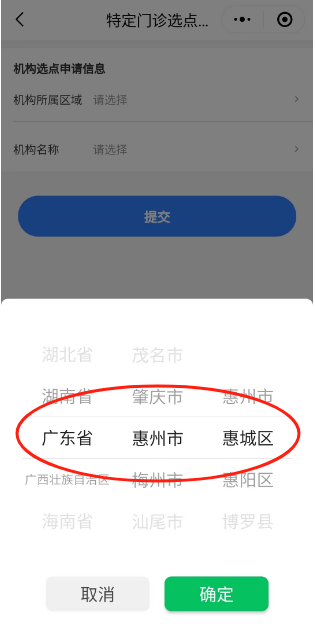 正確選擇“機構(gòu)所屬區(qū)域”及“機構(gòu)名稱”