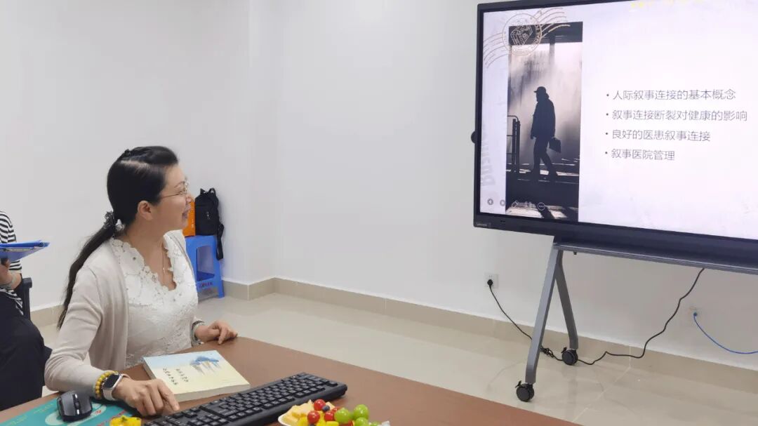 分享會(huì)在輕松愉快的氛圍中拉開帷幕。門診黨支部書記李緒嫻和門診護(hù)士巫潔怡首先簡(jiǎn)單介紹了敘事醫(yī)學(xué)的發(fā)展背景和敘事連接的概念,讓大家初步認(rèn)識(shí)到敘事醫(yī)學(xué)強(qiáng)調(diào)的是以敘事的方式理解和回應(yīng)患者的經(jīng)歷和感受,致力于實(shí)現(xiàn)科學(xué)與人文的融合,增添醫(yī)學(xué)的溫暖。
