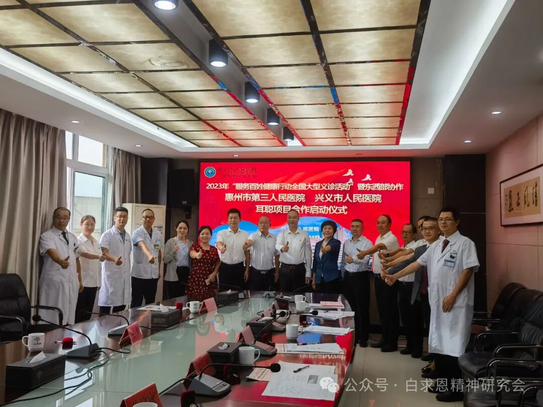 王豪教授:該院在我們完成調(diào)研工作后對(duì)惠州市第三人民醫(yī)院進(jìn)行了回訪,表達(dá)了希望兩院結(jié)合推動(dòng)人工耳蝸植入手術(shù),造福當(dāng)?shù)芈犝匣颊叩囊庠?。同時(shí)我們也了解到該院很有人文深度,一直在努力推進(jìn)醫(yī)學(xué)人文建設(shè),并正在向白求恩精神研究會(huì)爭(zhēng)取讓白求恩精神教育基地在該院落地。我們根據(jù)調(diào)研情況進(jìn)行了深入的綜合分析,覺得興義市人民醫(yī)院具備且符合開展人工耳蝸植入手術(shù)落地的條件。經(jīng)批準(zhǔn),2023年9月份,我在興義市人民醫(yī)院設(shè)立了工作站,這個(gè)公益項(xiàng)目正式落地。