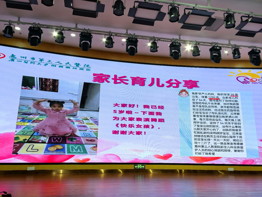 在家長(zhǎng)育兒經(jīng)驗(yàn)分享環(huán)節(jié),一位家長(zhǎng)分享了寶寶從28周早產(chǎn)兒到5歲活潑可愛(ài)孩子的成長(zhǎng)歷程。她的經(jīng)歷深深觸動(dòng)了在場(chǎng)的每一位家長(zhǎng),讓大家更加堅(jiān)定了為早產(chǎn)兒健康成長(zhǎng)而努力的決心。