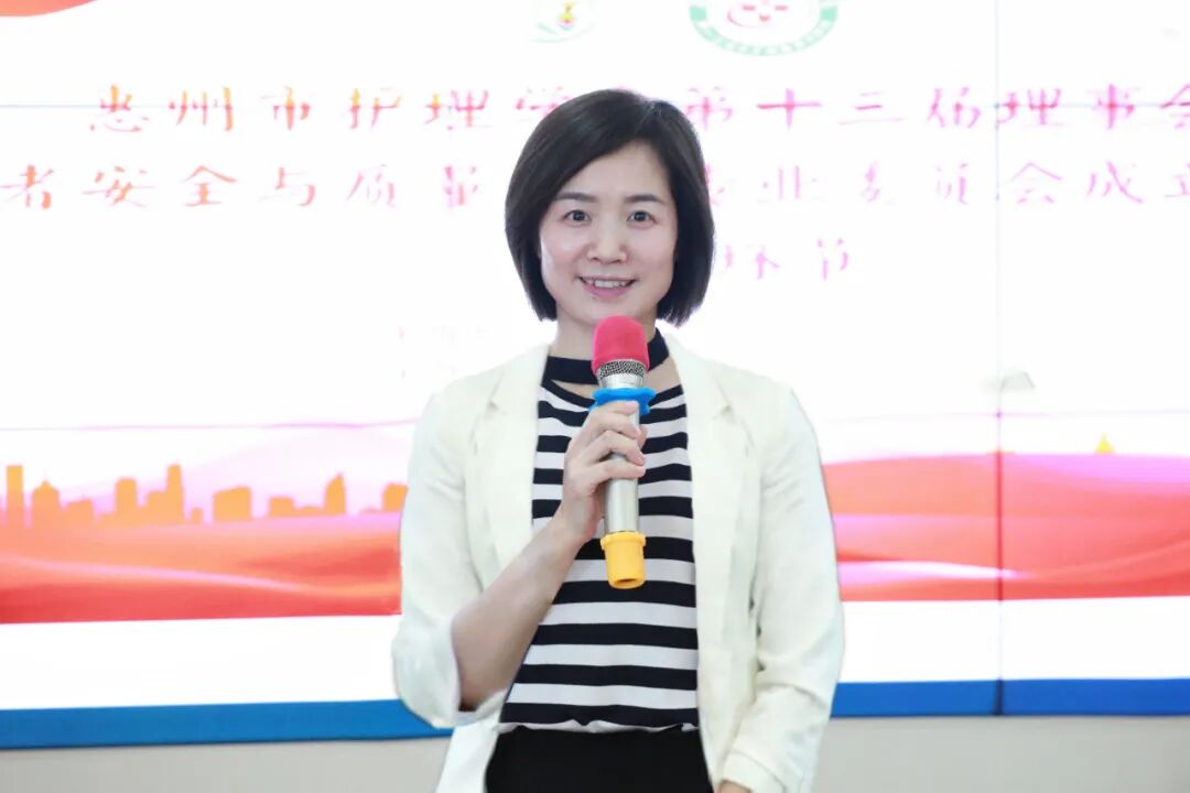 惠州市護(hù)理學(xué)會(huì)患者安全與質(zhì)量改善專委會(huì)主任委員、惠州市第三人民醫(yī)院護(hù)理質(zhì)管科臨時(shí)負(fù)責(zé)人陳偉花發(fā)表任職講話
