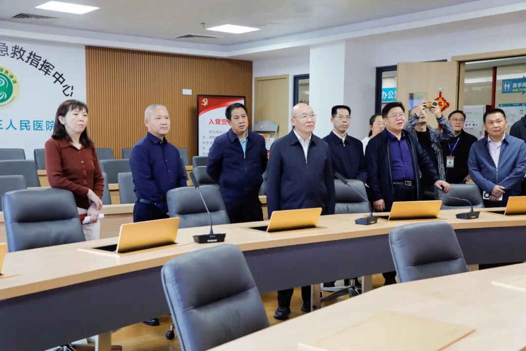 會后,調(diào)研組一行還實地走訪了心腦血管病大樓神經(jīng)醫(yī)學(xué)中心神經(jīng)內(nèi)科一區(qū),了解了科室病種收治、技術(shù)開展、卒中中心建設(shè)等相關(guān)情況。隨后前往醫(yī)院急診科5G移動卒中指揮中心,調(diào)研了解了廣東省首個“5G移動卒中單元”的運行和工作開展情況。