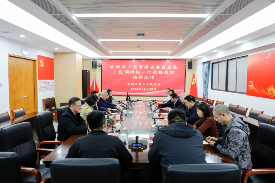 2024年11月28日下午,全國政協(xié)委員、青海省政協(xié)副秘書長、農(nóng)工黨青海省委會主委王昆率調(diào)研組一行來到惠州市第三人民醫(yī)院開展“完善醫(yī)防協(xié)同機制研究”重點課題調(diào)研?;葜萑狐h委書記肖純、黨委專職副書記楊燕媚等院領(lǐng)導(dǎo)及相關(guān)職能科室負責人陪同調(diào)研。