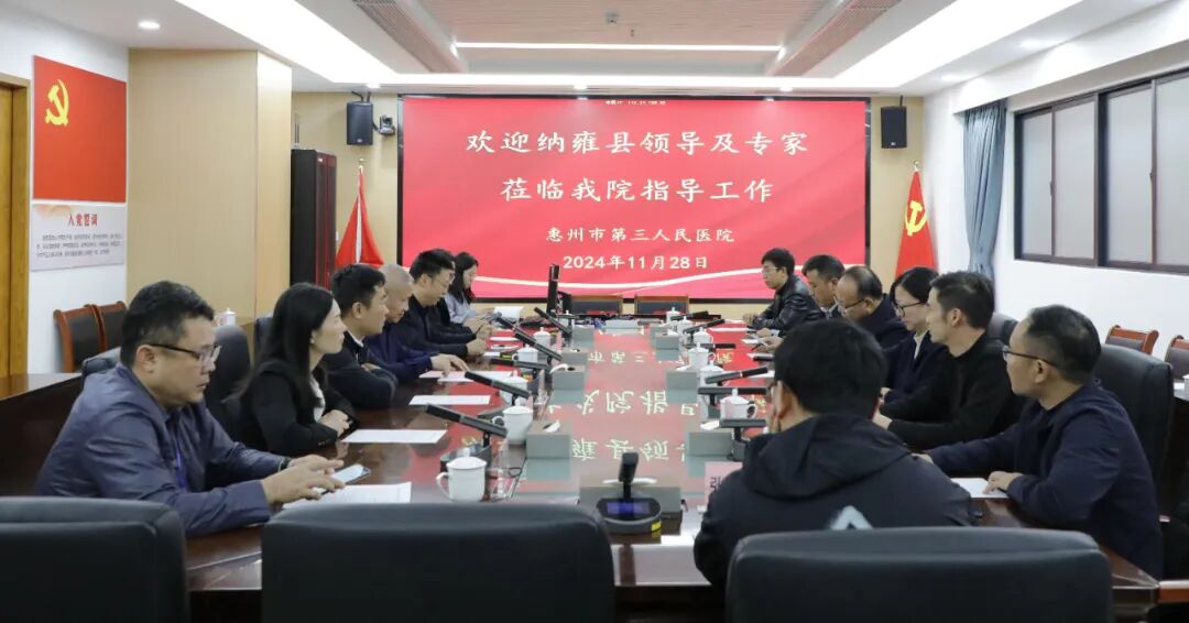 根據(jù)農(nóng)工黨中央及粵黔兩地農(nóng)工黨組織的有關(guān)工作部署,為進(jìn)一步推動(dòng)“地域+領(lǐng)域”組團(tuán)式幫扶工作取得成效,加強(qiáng)匯報(bào)對(duì)接,2024年11月28日上午,納雍縣人民政府副縣長(zhǎng)林煉深,納雍縣衛(wèi)生健康局黨組書(shū)記、局長(zhǎng)郝慶等一行及農(nóng)工黨廣東省委會(huì)社會(huì)服務(wù)處副處長(zhǎng)曾盈,農(nóng)工黨惠州市委會(huì)專(zhuān)職副主委賴(lài)惠育,惠城區(qū)衛(wèi)生健康局黨組成員、副局長(zhǎng)鄭雙華等領(lǐng)導(dǎo)專(zhuān)家一同來(lái)到惠州市第三人民醫(yī)院參觀交流指導(dǎo)并現(xiàn)場(chǎng)走訪(fǎng)臨床科室。