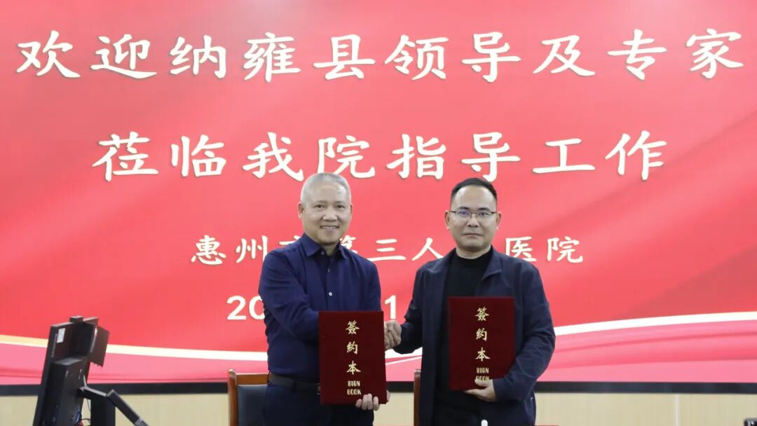 隨后,雙方現(xiàn)場(chǎng)簽訂了幫扶協(xié)議。未來(lái),惠州三院將進(jìn)一步加強(qiáng)與貴州省納雍縣人民醫(yī)院對(duì)口支援與協(xié)作關(guān)系,不斷為健康貴州、健康中國(guó)建設(shè)作出新貢獻(xiàn)!