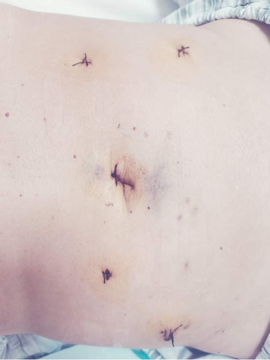 術(shù)后腹壁僅有幾個(gè)微小切口、無輔助切口