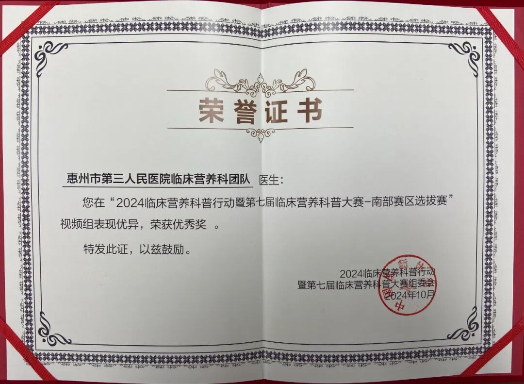第七屆臨床營養(yǎng)科普大賽優(yōu)秀獎