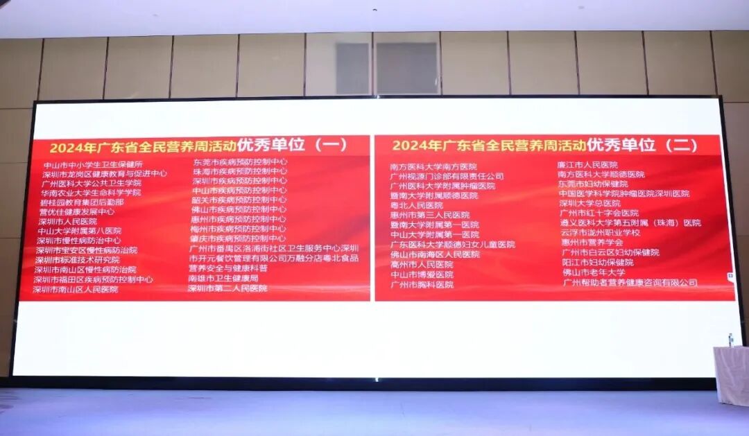 近日,廣東省營養(yǎng)學(xué)會在廣州召開廣東省2024年全民營養(yǎng)周總結(jié)大會,惠州市第三人民醫(yī)院在2024年第十屆全民營養(yǎng)周活動中表現(xiàn)優(yōu)異,被授予優(yōu)秀單位,是惠州唯一被授予第十屆廣東省全民營養(yǎng)周活動優(yōu)秀單位的“三甲”醫(yī)院!