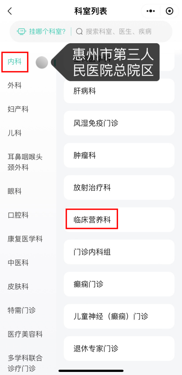 如果您想咨詢營養(yǎng)方面相關(guān)問題,可預(yù)約營養(yǎng)科醫(yī)生咨詢。方法如下:關(guān)注“惠州市第三人民醫(yī)院”公眾號→就醫(yī)服務(wù)→預(yù)約掛號→總院區(qū)→內(nèi)科→臨床營養(yǎng)科。