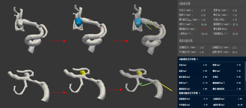 AI軟件能夠精準(zhǔn)生成16項(xiàng)動(dòng)脈瘤的三維空間形態(tài)學(xué)參數(shù)。與傳統(tǒng)影像工作站中醫(yī)生僅能手動(dòng)完成的二維測(cè)量相比,AI技術(shù)實(shí)現(xiàn)了三維測(cè)量,不僅顯著提高了測(cè)量的精度,還有效消除了因醫(yī)生主觀判斷而產(chǎn)生的差異,使結(jié)果更加精準(zhǔn)和可重復(fù)!