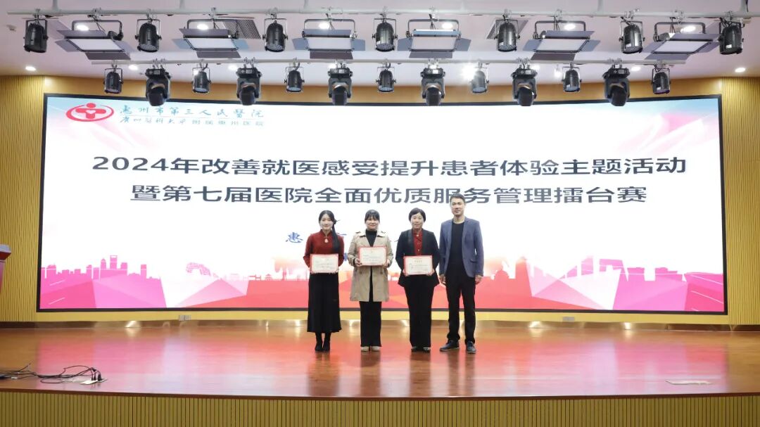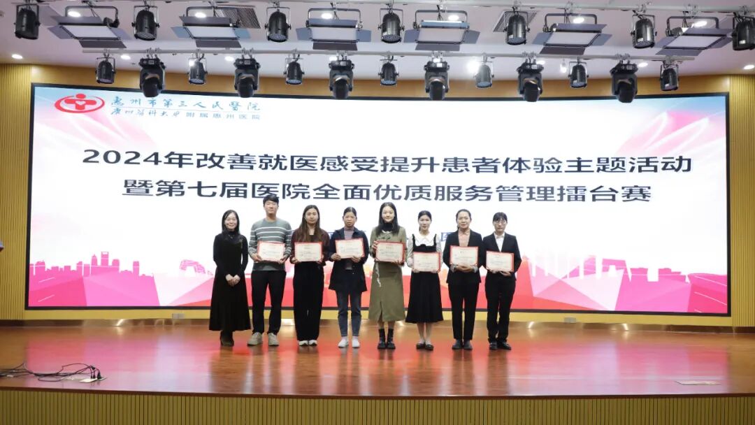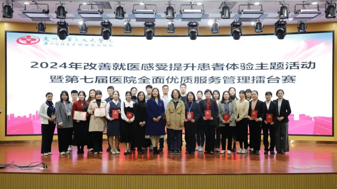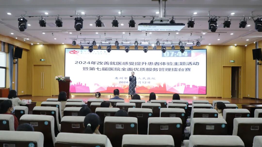 為貫徹落實《改善就醫(yī)感受提升患者體驗主題活動實施方案》(2023-2025),持續(xù)改善患者就醫(yī)體驗,深入挖掘改善醫(yī)療服務流程的創(chuàng)新方法,推進優(yōu)質服務的深入開展,助力醫(yī)院高質量發(fā)展,2024年12月12日,由惠州市第三人民醫(yī)院服務管理部主辦的“改善就醫(yī)感受提升患者體驗主題活動暨第七屆全面優(yōu)質服務管理擂臺賽”在總院區(qū)心腦血管病大樓學術報告廳舉行。