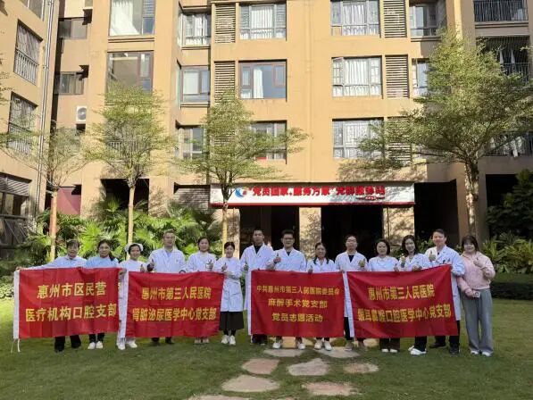 秋意正濃,寒風(fēng)漸起。近日,惠州市第三人民醫(yī)院的麻醉手術(shù)黨支部、腎臟泌尿醫(yī)學(xué)中心黨支部以及眼耳鼻喉口腔醫(yī)學(xué)中心黨支部,攜手惠州市區(qū)民營醫(yī)療機構(gòu)口腔支部,共同舉辦了一場以“健康義診傳遞溫情”為主題的黨日活動,將專業(yè)醫(yī)療服務(wù)直接送到社區(qū)居民家門口。