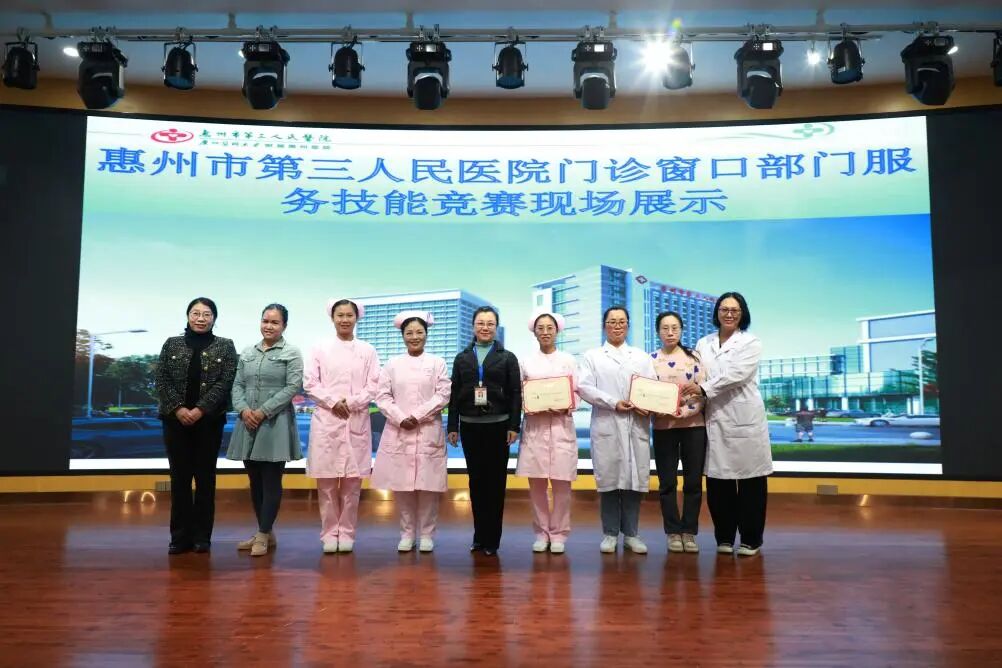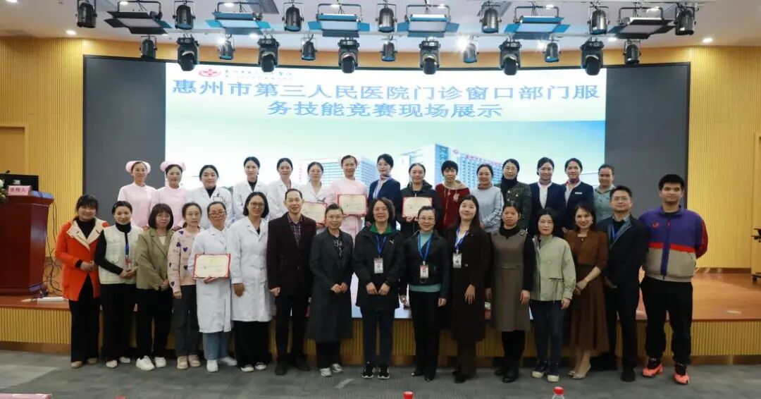為深入貫徹《公立醫(yī)院高質(zhì)量發(fā)展促進(jìn)行動(2021 - 2025 年)》以及《改善就醫(yī)感受提升患者體驗主題活動方案(2023 - 2025 年)》文件要求,切實提升窗口部門服務(wù)水平,改善患者就醫(yī)體驗,促進(jìn)醫(yī)院高質(zhì)量發(fā)展,由惠州市惠城區(qū)總工會主辦,惠州市第三人民醫(yī)院工會、門診辦與服務(wù)管理部聯(lián)合承辦的“窗口部門服務(wù)技能評比”活動于 2024 年 12 月 13 日在醫(yī)院心腦血管病大樓( 7 號樓)學(xué)術(shù)報告廳迎來了最終的評比展示競賽環(huán)節(jié)。