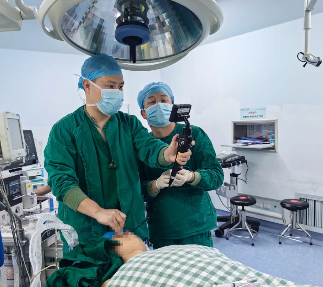 麻醉科鄧海波副主任醫(yī)師及羅會(huì)紅主任醫(yī)師通過(guò)纖支鏡探查氣道,發(fā)現(xiàn)患者氣管在最狹窄處尚有部分彈性,可以容納氣管導(dǎo)管經(jīng)過(guò)。兩位醫(yī)生在充分評(píng)估后,憑借豐富的經(jīng)驗(yàn)及扎實(shí)的技術(shù),成功實(shí)施麻醉。