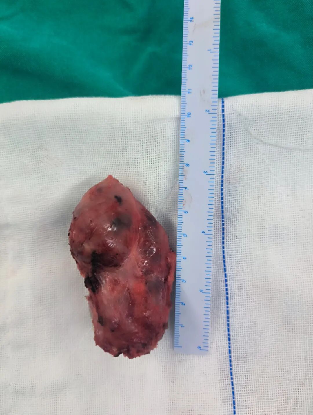 經(jīng)過(guò)兩個(gè)多小時(shí)的奮戰(zhàn),蔣富兵醫(yī)生及其團(tuán)隊(duì)終于將鐘大姐雙側(cè)甲狀腺巨大腫瘤順利完整切除,術(shù)前所擔(dān)心的氣管軟化情況也沒(méi)有出現(xiàn)。手術(shù)結(jié)束,鐘大姐順利復(fù)蘇,安返病房,目前已順利出院。