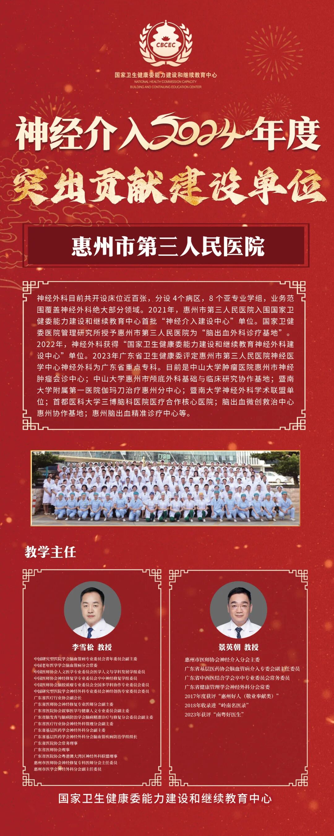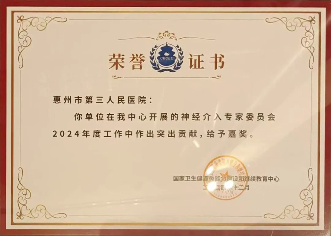 【喜報(bào)】惠州市第三人民醫(yī)院獲評“全國神經(jīng)介入2024年度突出貢獻(xiàn)建設(shè)單位”!