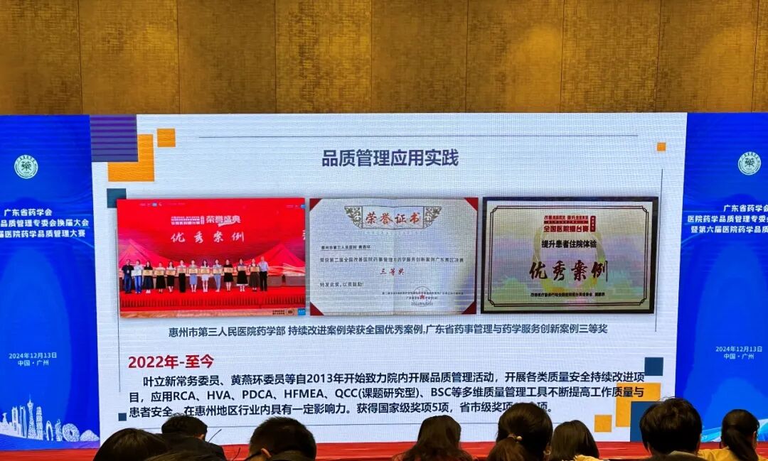 賽后,廣東省醫(yī)院藥學(xué)品質(zhì)管理專業(yè)委員會(huì)?;荻Y主委在總結(jié)發(fā)言中高度贊譽(yù)了惠州市第三人民醫(yī)院藥學(xué)部。自 2013 年起,惠州三院藥學(xué)部積極投身于院內(nèi)品質(zhì)管理活動(dòng),大力推進(jìn)各類質(zhì)量安全持續(xù)改進(jìn)項(xiàng)目,熟練運(yùn)用多維質(zhì)量管理工具,不斷提升工作質(zhì)量與患者安全保障水平。同時(shí),該部門在區(qū)域內(nèi)發(fā)揮了顯著的引領(lǐng)作用,帶動(dòng)基層醫(yī)療機(jī)構(gòu)積極引入質(zhì)量管理方法,并在省、國家級(jí)持續(xù)改進(jìn)項(xiàng)目評(píng)選中屢獲殊榮,在惠州地區(qū)乃至全省藥學(xué)行業(yè)樹立了典范。