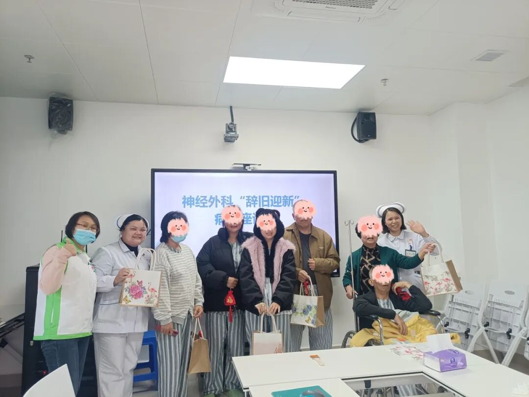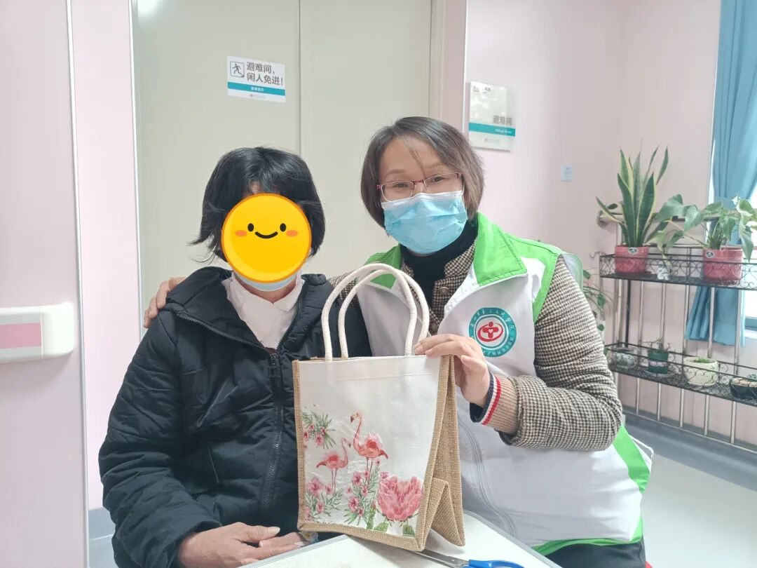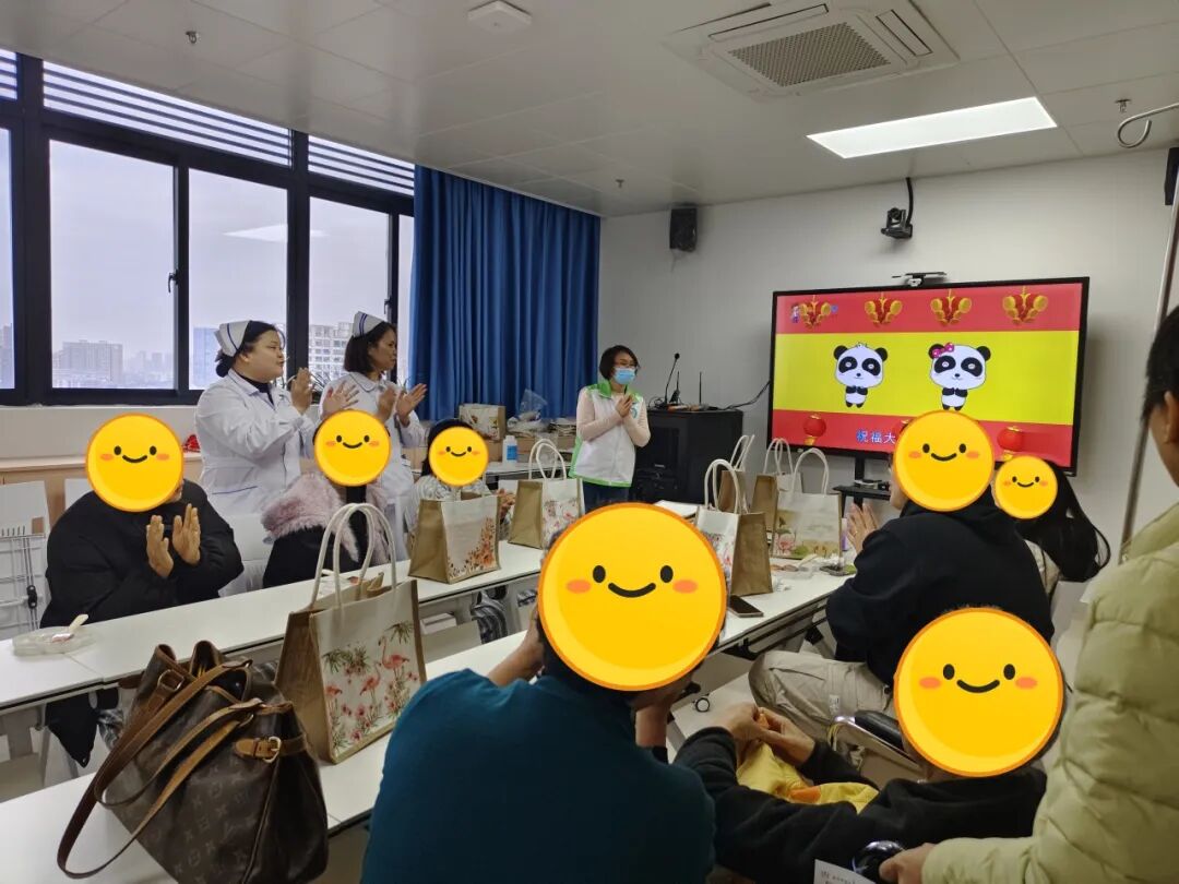 隨后,醫(yī)務(wù)社工組織大家一起合唱歌曲《新年好》,歡快的旋律在病房里回蕩,驅(qū)散了病痛的陰霾。歌聲中大家暫時(shí)忘卻了身體的不適,臉上洋溢著喜悅,為新一年許下美好的期盼。神經(jīng)外科溫建萍護(hù)長(zhǎng)更是精心為患者們準(zhǔn)備了新年福袋,福袋雖小,卻裝滿了祝福與關(guān)懷。當(dāng)護(hù)長(zhǎng)將寓意美好的福袋送到患者手中,溫馨的畫(huà)面仿佛定格在了時(shí)光里,活動(dòng)也在此圓滿畫(huà)上句號(hào)!