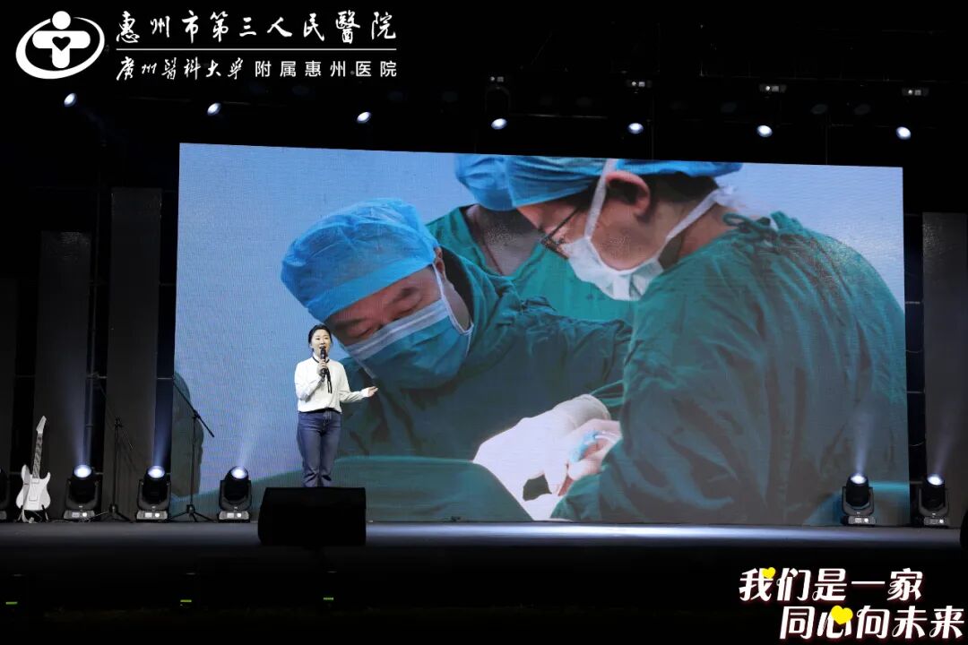 晚會在全場大合唱《相親相愛一家人》中漸近尾聲,惠州三院黨委書記肖純上臺發(fā)表講話,回顧過往、展望未來,話語間滿是對醫(yī)院發(fā)展的期許與對職工的關(guān)懷。最后,領(lǐng)導(dǎo)嘉賓與工作人員合影留念,活動圓滿成功!