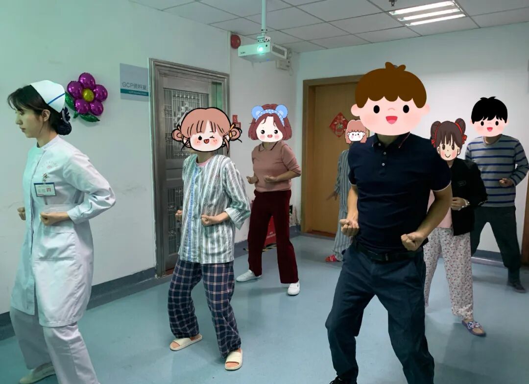 惠州三院腫瘤內(nèi)科護(hù)士帶領(lǐng)患者練習(xí)八段錦