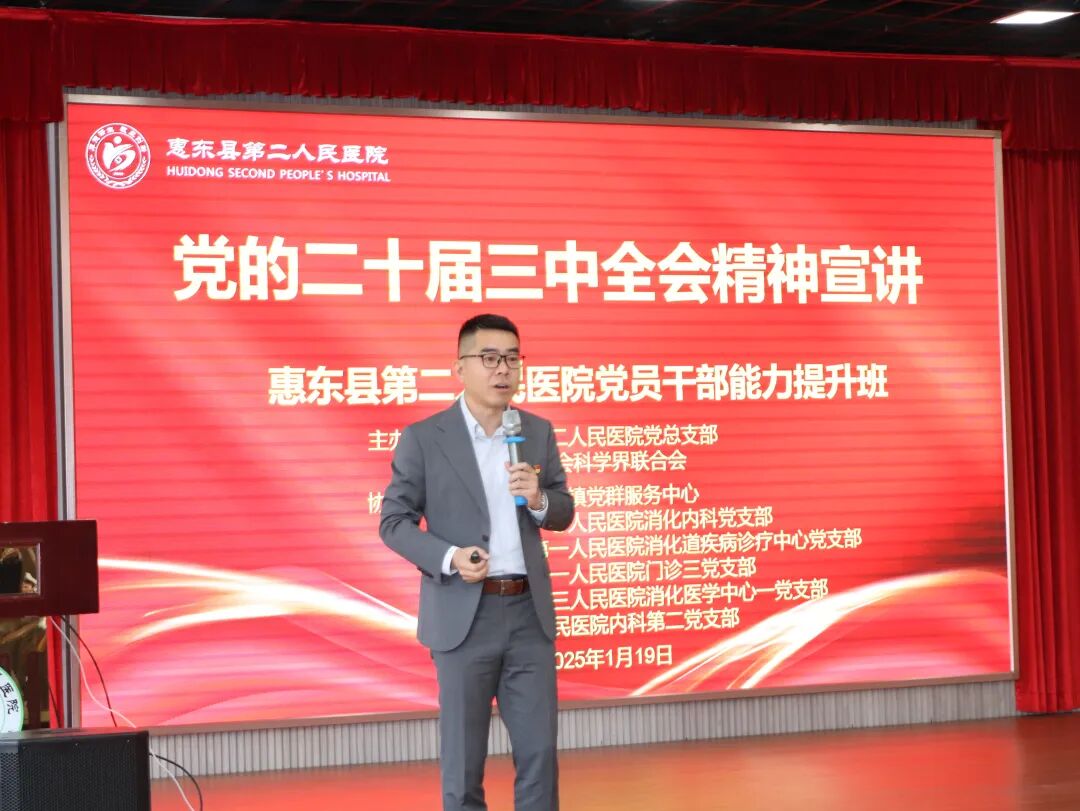 為深入學習貫徹黨的二十大精神,加強黨組織之間的交流與合作,提升黨員的政治素養(yǎng)和業(yè)務能力,同時普及健康知識,服務群眾健康,2025年1月18日,惠州市第三人民醫(yī)院消化醫(yī)學中心一黨支部受惠東縣第二人民醫(yī)院邀請,參加“黨建引領聚合力,知識普及惠民生”聯(lián)合黨建活動,惠州三院消化醫(yī)學中心一黨支部支部書記徐永輝主任醫(yī)師參與授課。
