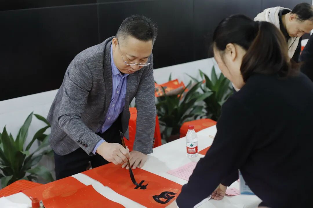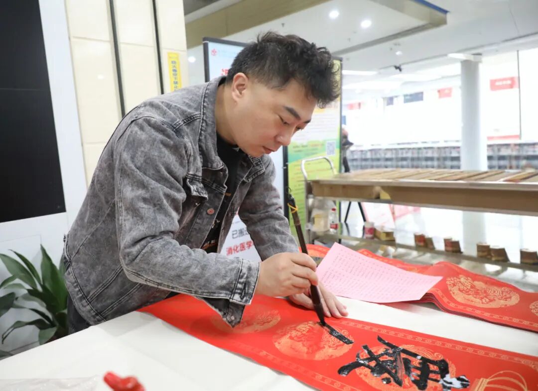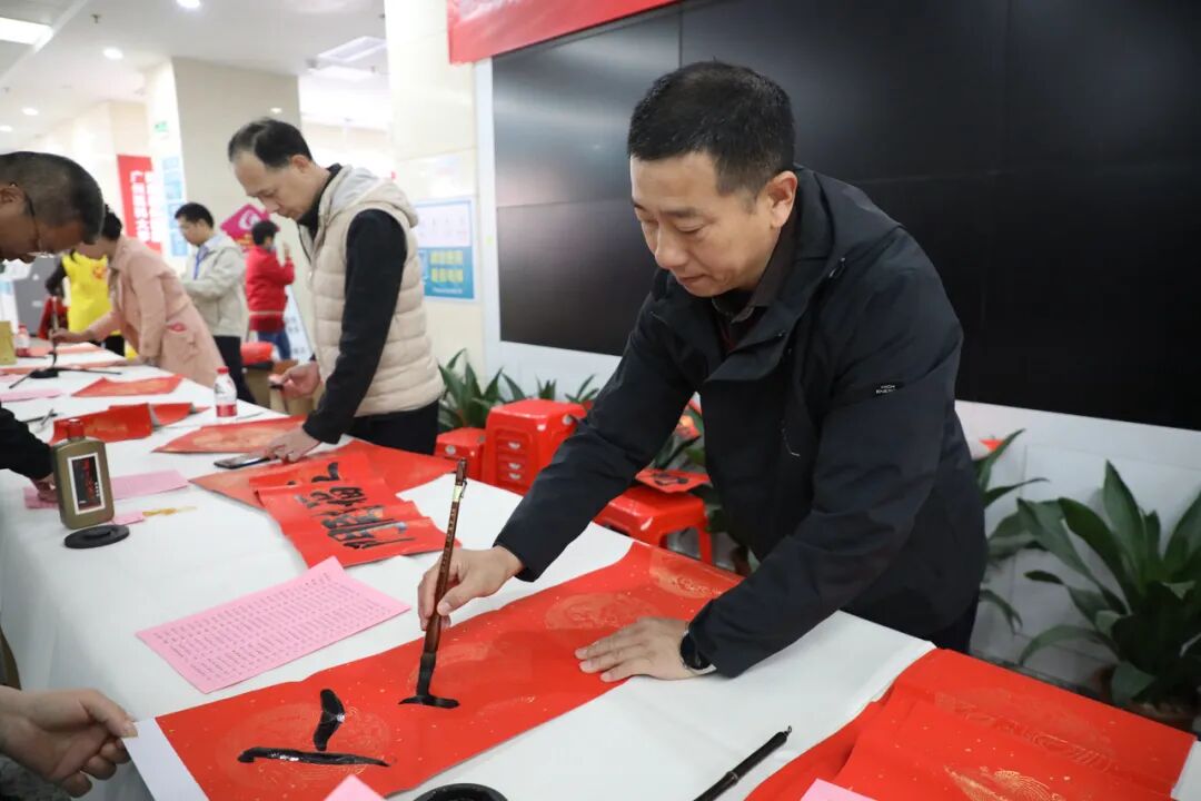一紙一墨、一橫一豎,一幅幅墨跡未干的春聯(lián)構(gòu)成一道年味十足的風(fēng)景線。此次活動共送出春聯(lián)300余副、“福”字600余個,濃濃的年味在對聯(lián)中傳遞,讓大家的心也緊緊“年”在一起。