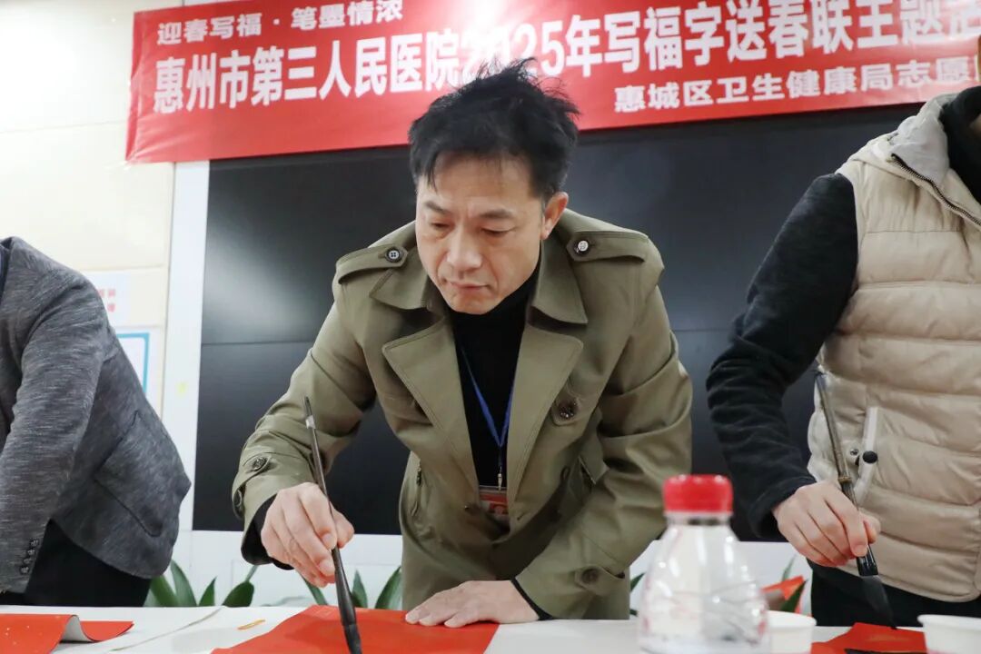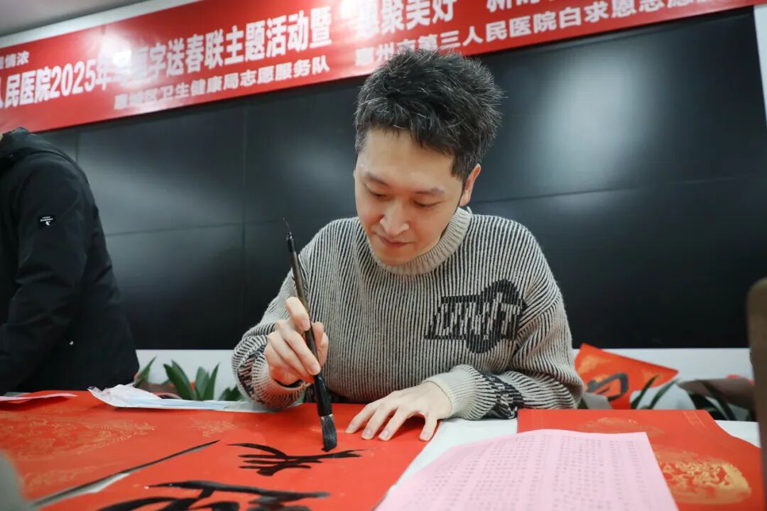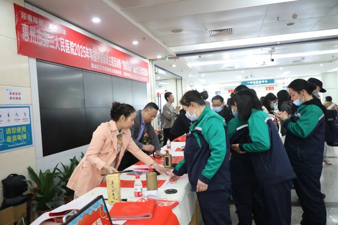 為深化醫(yī)院文化建設(shè)內(nèi)涵,進(jìn)一步弘揚和傳承中華優(yōu)秀傳統(tǒng)文化,營造熱烈喜慶、歡樂祥和的節(jié)日氛圍,2025年1月21日上午,惠州市第三人民醫(yī)院開展了“迎春寫福,筆墨情濃”——惠州市第三人民醫(yī)院2025年寫福字送春聯(lián)主題活動暨“惠聚美好”新時代文明實踐活動,為來院就診的市民群眾以及本院職工書寫新春對聯(lián)及福字,送上暖心關(guān)懷和新春的美好祝福。