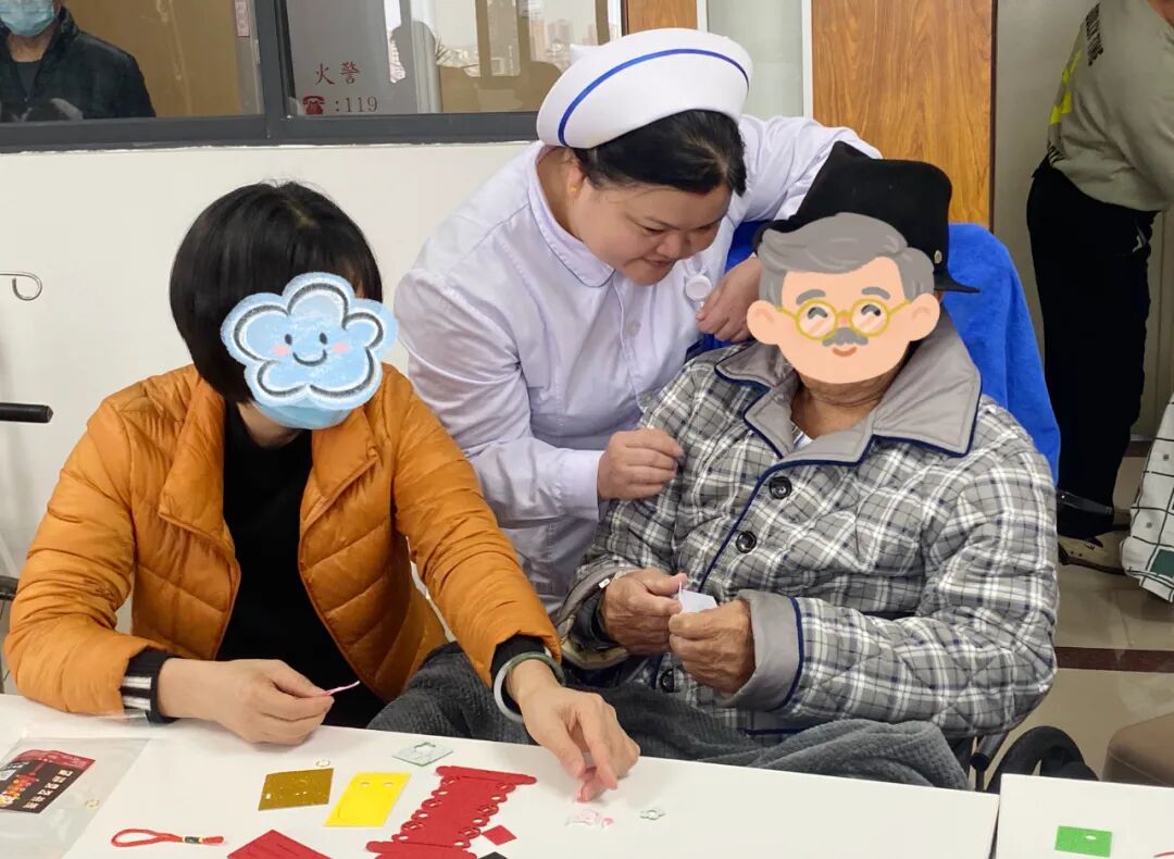 隨后,一場別開生面的手工制作新年掛飾活動(dòng)拉開了序幕。神經(jīng)外科的患者們術(shù)后需要精細(xì)的康復(fù)訓(xùn)練,每一個(gè)細(xì)微的動(dòng)作都關(guān)乎著他們能否早日回歸正常生活。醫(yī)務(wù)社工們精心策劃,將手工制作與康復(fù)巧妙融合,鍛煉患者的手眼協(xié)調(diào)能力與思維能力?;颊邆冸m飽受病痛困擾,記憶力與肢體協(xié)調(diào)性面臨挑戰(zhàn),但在家人、醫(yī)護(hù)人員和醫(yī)務(wù)社工的陪伴鼓勵(lì)下,絲毫未減創(chuàng)作熱情。大家圍坐一堂,共同動(dòng)手制作。當(dāng)一個(gè)個(gè)富有創(chuàng)意的新年掛飾完成時(shí),他們的臉上洋溢著自豪的笑容,仿佛找到了重新?lián)肀篮蒙畹挠職夂拖M?/span>