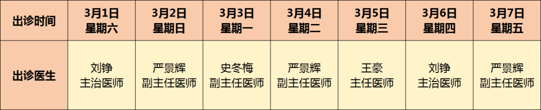 義診時間:2025年3月1日-7日,每日09:00-11:00