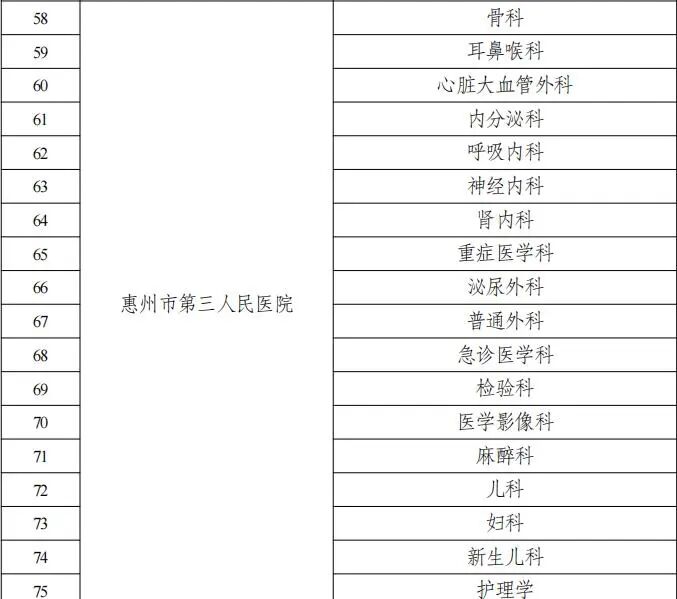 名單,惠州市第三人民醫(yī)院心臟大血管外科、神經(jīng)內(nèi)科等18個??瞥晒θ脒x惠州市臨床重點??平ㄔO(shè)項目。