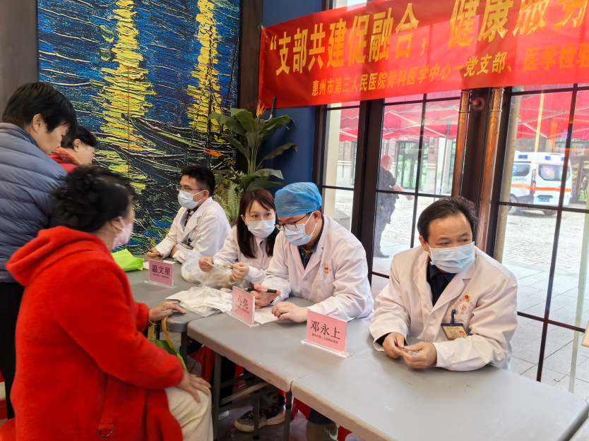 2025年3月5日上午,惠州市第三人民醫(yī)院骨科醫(yī)學中心一黨支部、醫(yī)學檢驗一黨支部聯(lián)合小金口社區(qū)衛(wèi)生服務中心黨支部,共同開展了“支部共建促融合,健康服務到門前”義診服務活動。此次活動旨在通過黨建引領聚合力,暖心服務“鄰”距離 ——“關愛骨骼健康,引導優(yōu)質醫(yī)療資源下沉至基層”,提升基層醫(yī)療衛(wèi)生服務能力,滿足群眾健康需求。