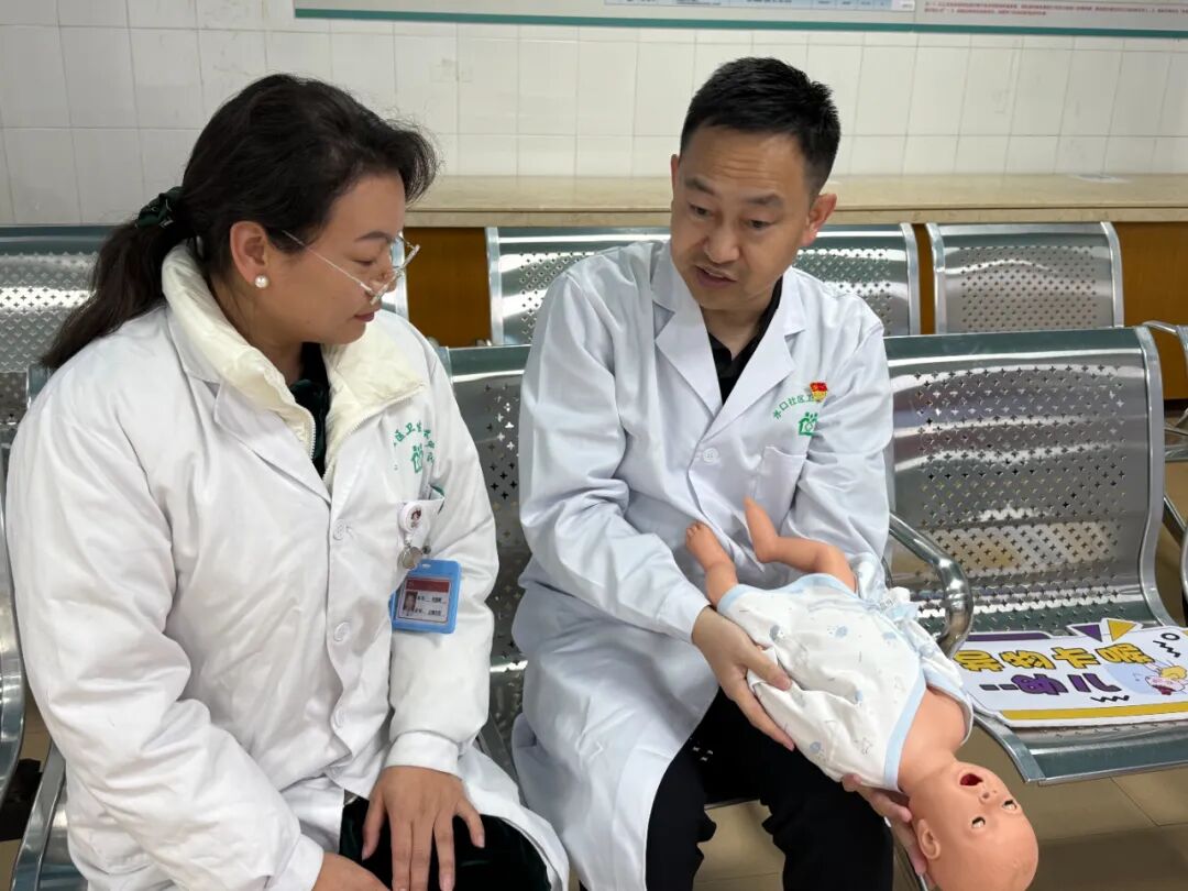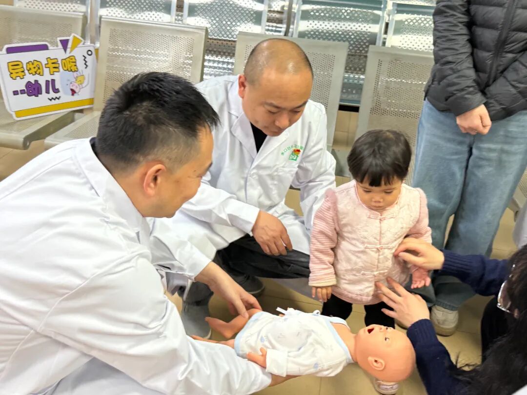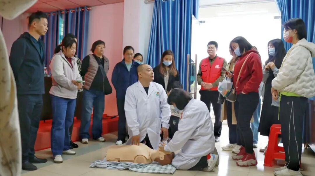 重癥黨支部書記付文良及黨員莫川川結(jié)合黨組織服務(wù)群眾職能,現(xiàn)場示范海姆立克急救法,并手把手教學(xué),幫助居民掌握急救技能。
