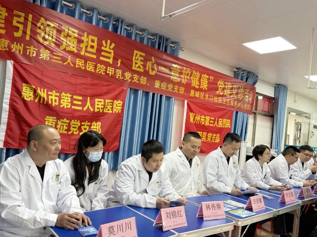 為深入貫徹落實(shí)黨的二十大精神,充分發(fā)揮黨建引領(lǐng)作用,推動優(yōu)質(zhì)醫(yī)療資源下沉基層,惠州市第三人民醫(yī)院甲乳黨支部、重癥黨支部與水口社區(qū)衛(wèi)生服務(wù)中心黨支部聯(lián)合開展義診活動,為社區(qū)居民提供便捷的健康服務(wù),助力基層治理和健康社區(qū)建設(shè)!