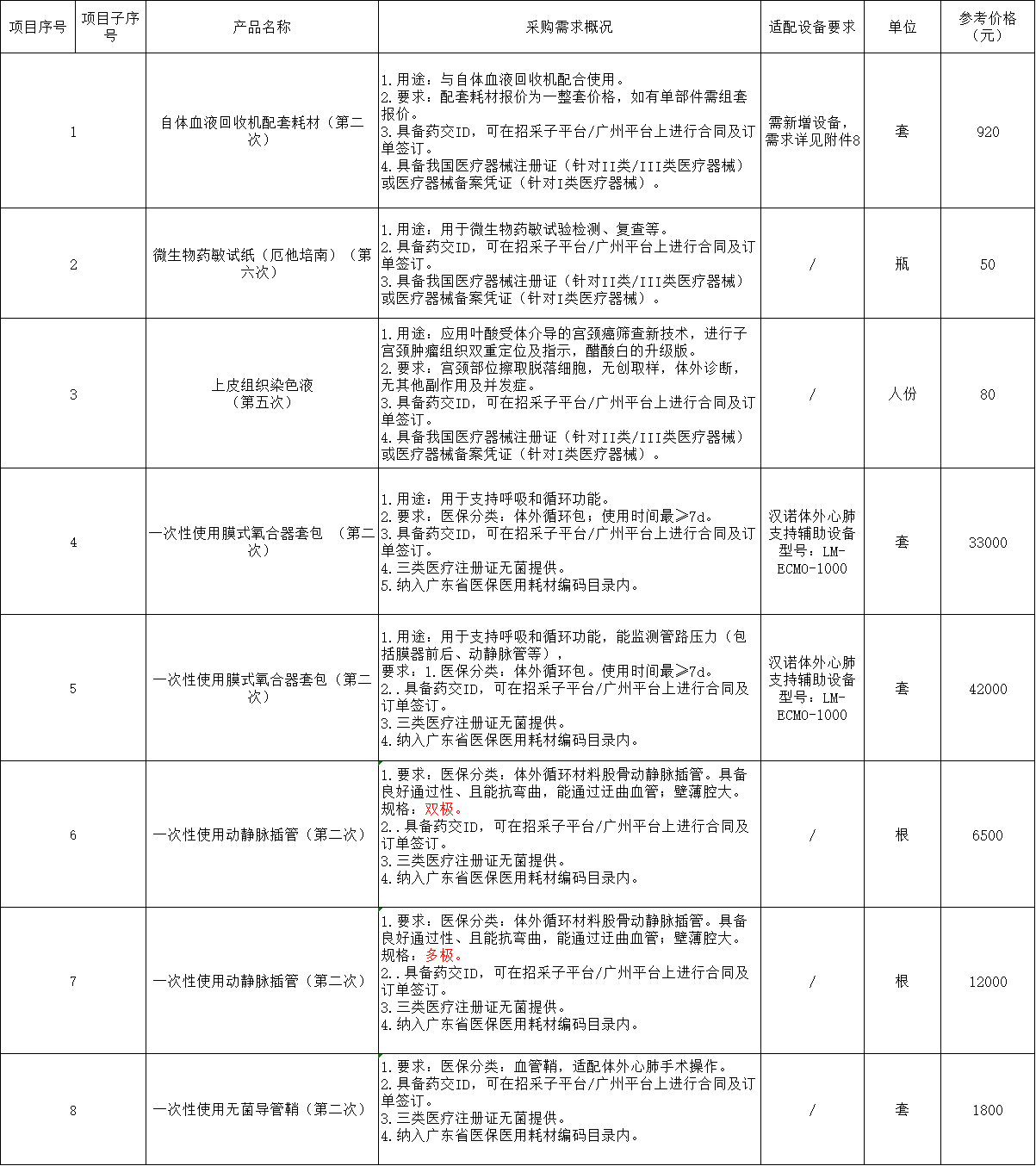 4、如報(bào)名多個(gè)醫(yī)用耗材項(xiàng)目,應(yīng)將所有報(bào)名的醫(yī)用耗材議價(jià)項(xiàng)目填入報(bào)名產(chǎn)品明細(xì)表(要用excel和PDF兩種格式提交)。