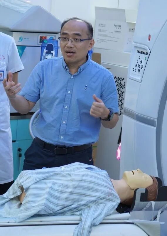 演練模擬了在CT檢查過程中,患者突然發(fā)生造影劑重度過敏反應的緊急場景,王教授不僅扮演指揮者,更親身投入角色,完整演示了從突發(fā)狀況識別、緊急呼叫、團隊分工協(xié)作,到第一時間進行氣道管理、藥物搶救及生命支持的全流程。整個過程緊張有序,最大限度還原了臨床工作中可能遇到的真實險境。