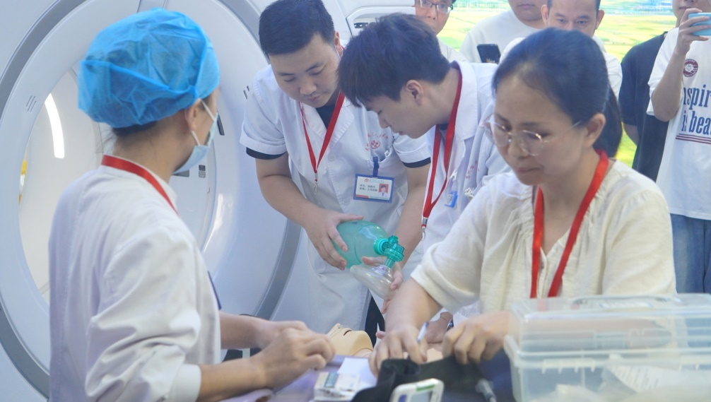 現(xiàn)場觀摩的醫(yī)護人員全神貫注,不時用筆或手機記錄下關(guān)鍵步驟。大家紛紛表示,這種原位模擬訓練極具沖擊力和指導意義。此次實戰(zhàn)演練強化了影像技師的應急處理能力與臨床協(xié)作意識,將“精準影像”的范疇從技術(shù)操作延伸至生命守護,為全面提升醫(yī)療質(zhì)量與患者安全打下了堅實的基礎。