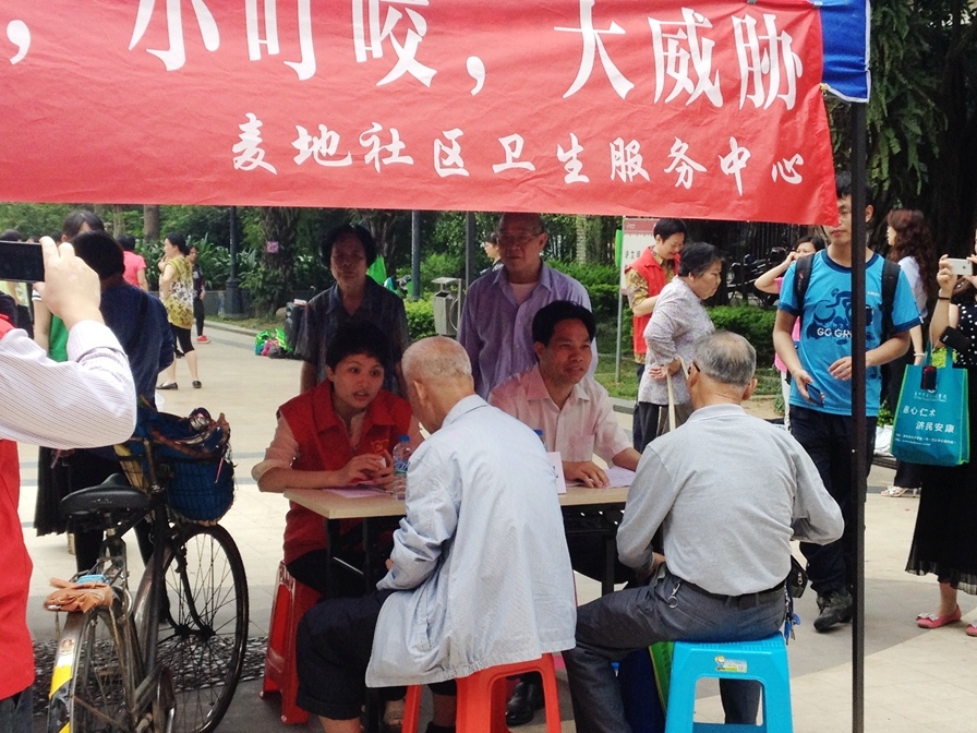 “您會按時做檢查嗎?您對社區(qū)醫(yī)生上門服務(wù)滿意嗎?”2014年4月26日,惠城區(qū)衛(wèi)生局聯(lián)合市第三人民醫(yī)院、南湖社區(qū)工作站、惠城區(qū)慢性病防治站、麥地社區(qū)衛(wèi)生服務(wù)中心等單位,在南門公園開展“公共衛(wèi)生進(jìn)社區(qū)”大型健康促進(jìn)活動,惠城區(qū)衛(wèi)生局局長鄒忠平現(xiàn)場收集群眾對醫(yī)療衛(wèi)生工作的意見。