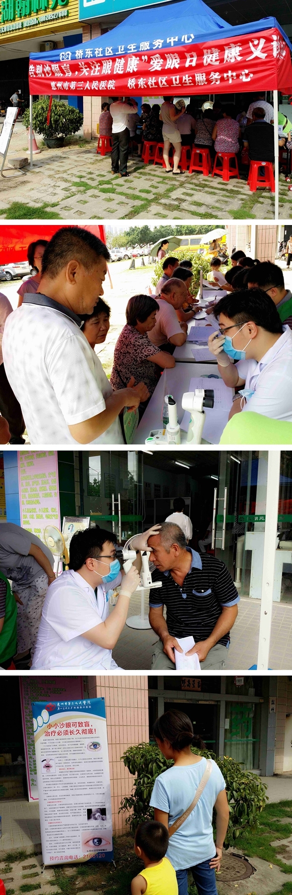 當日,橋東社區(qū)衛(wèi)生服務(wù)中心為居民們進行了體格檢查和更新健康檔案,我院眼科醫(yī)生則為大家測視力、行裂隙燈檢查,解答眼科保健、疑難眼病等問題,并為大家宣教如何科學用眼、治療眼病等。結(jié)合今年愛眼日主題,本次活動重點宣教了如何防治沙眼盲。