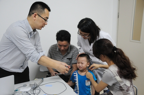 今年5月,由惠州市第三人民醫(yī)院和香港耳聽心言基金會(huì)聯(lián)合舉辦的香港耳聰工程惠州站啟動(dòng),為16名失聰患者成功進(jìn)行免費(fèi)手術(shù),其中7名學(xué)齡前兒童進(jìn)行了人工耳蝸植入術(shù)。植入人工耳蝸手術(shù)傷口恢復(fù)后一個(gè)月,惠州市第三人民醫(yī)院即通知孩子們接受開機(jī)調(diào)試。據(jù)了解,7名兒童進(jìn)行人工耳蝸開機(jī)均有聽力反應(yīng)。