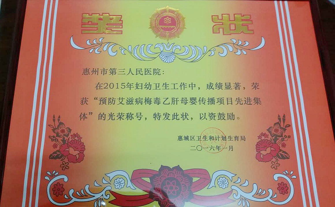 在惠城區(qū)衛(wèi)計局和我院的組織領(lǐng)導(dǎo)下,我院婦幼衛(wèi)生工作人員認(rèn)真貫徹“一法兩綱”,做好公共衛(wèi)生婦幼項目工作,緊緊圍繞降低孕產(chǎn)婦死亡率、嬰兒死亡率和出行缺陷發(fā)生率的目標(biāo),辛勤工作,在2015年順利完成婦幼公共衛(wèi)生各項工作,其中預(yù)防艾滋病梅毒乙肝母嬰傳播項目獲得由惠城區(qū)衛(wèi)生和計劃生育通報表彰先進(jìn)集體稱號。