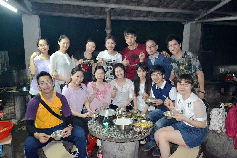 接著2隊學(xué)員交換場地進(jìn)行各自的下一項目,等2隊學(xué)院各自完成自己的第三個項目時,已是黃昏時候,經(jīng)過短暫的修整大家又集中在一起進(jìn)行“三甲”應(yīng)知應(yīng)會及“五四”青年節(jié)有獎知識問答活動。隨機(jī)組成的8個小組展開了激烈的競爭,一道道內(nèi)容豐富的題目,一個個精彩的回答,不但讓在場的每個人都重新溫習(xí)了一遍應(yīng)知應(yīng)會和“五四”青年結(jié)的知識,也活躍了氣氛,讓大家更融洽的聚集在一起為完成今天的最后一個精彩活動,野炊打下很好的基礎(chǔ)。在一排排簡易灶頭邊,8個小組的青年們聚集在一起開始了更激烈的廚藝比拼,做大廚的做大廚,洗菜的洗菜,準(zhǔn)備餐具的準(zhǔn)備餐具,大家分工協(xié)作各展所長,都爭著做出一桌最美味的飯菜來。在忙碌的身影中,我們驚奇的發(fā)現(xiàn)原來我們中間藏著那么多的美食大神,一人一個拿手菜,不一會時間,周圍便濃香彌漫,一桌桌色香味俱全的美食大餐變魔術(shù)般展現(xiàn)在大家眼前。勞累了一天的學(xué)員們頓時食欲大動,圍坐在餐桌前與各色菜式發(fā)動了激烈的戰(zhàn)爭。每個小組還主動的與其他小組分享自己的菜式,相互品評,分享心得,其樂融融。