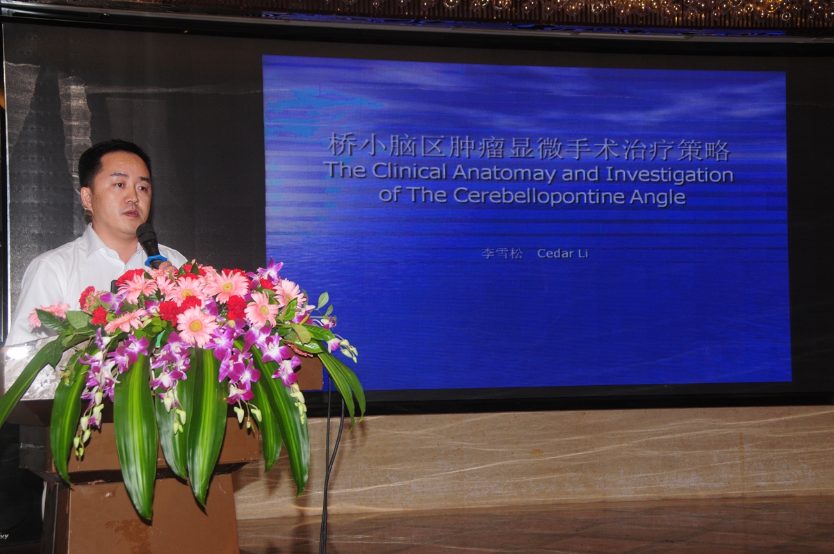 最后,由東道主惠州市第三人民醫(yī)院神經(jīng)醫(yī)學中心主任兼神經(jīng)外科主任李雪松教授,做了題為《橋小腦角區(qū)腫瘤顯微手術治療策略》的講演。李雪松博士介紹了惠州三院在腦腫瘤手術治療與多學科協(xié)作方面的經(jīng)驗,同時介紹了惠州三院在整合神經(jīng)外科、神經(jīng)內科、神經(jīng)電生理檢測、神經(jīng)康復科等多學科協(xié)作成立“神經(jīng)醫(yī)學中心”的經(jīng)驗。