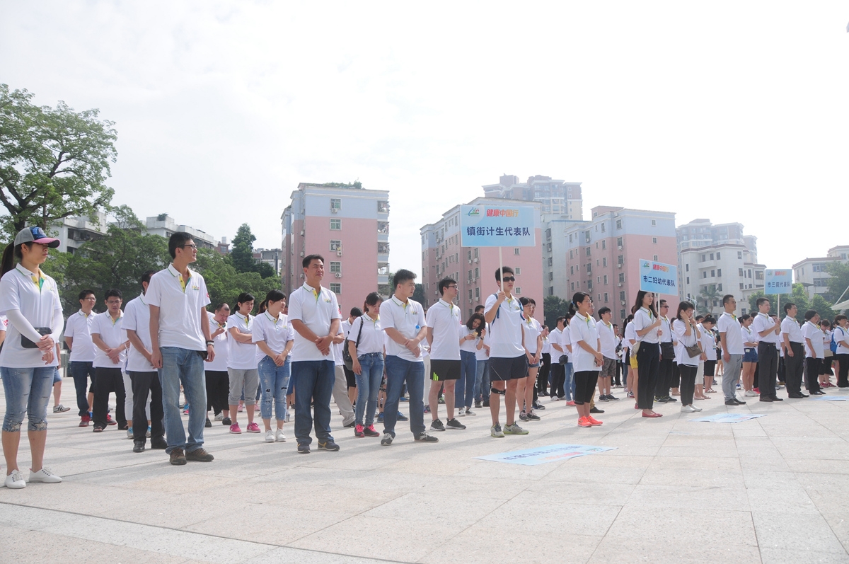 然后是各領導講話了,惠州市衛(wèi)計局宣教科蘇秉成科長宣讀了“健康中國行”健走活動的倡議書。沒有健康,必將阻礙人的全面發(fā)展,沒有全民健康,就沒有全面小康。目前惠州各級衛(wèi)計部門正按照健康中國、衛(wèi)生強省、衛(wèi)生強市的要求,大力加強健康教育與健康促進工作,采取多種形式,增強健康意識,引導群眾養(yǎng)成健康生活方式,提高群眾的健康素養(yǎng),為建設衛(wèi)生強市,打造健康惠州作出更大貢獻。