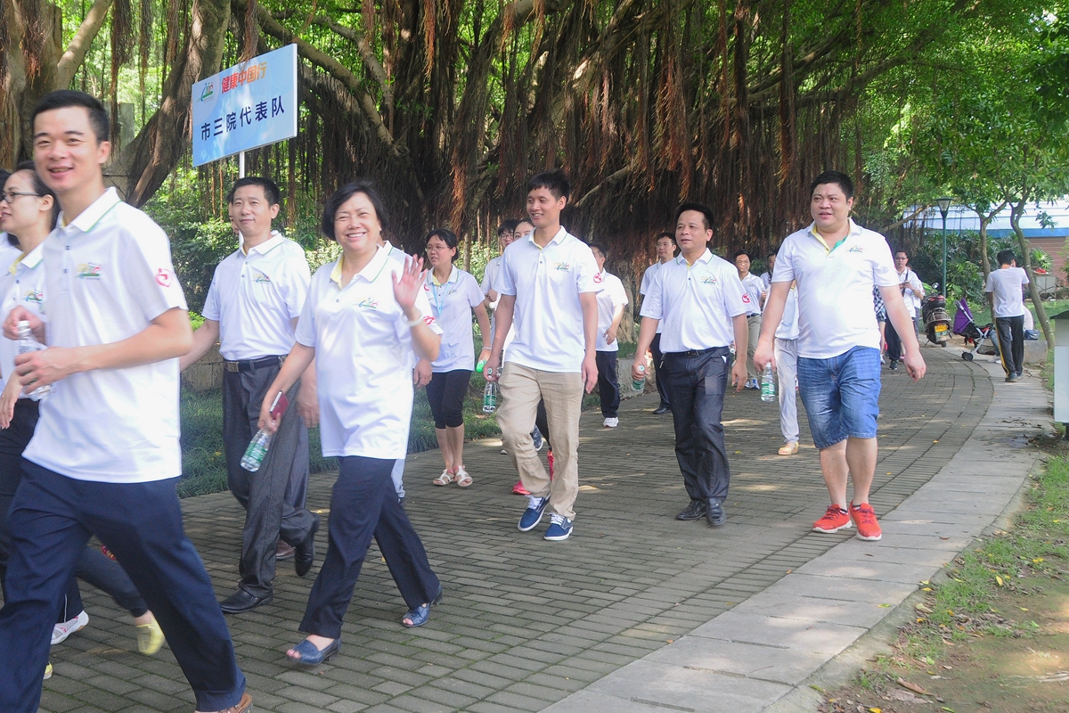 啟動儀式結束后,200多名活動參與者在惠州市第三人民醫(yī)院本部對面的東江沙公園舉行了“每天一萬步,健康我做主”的健走活動。