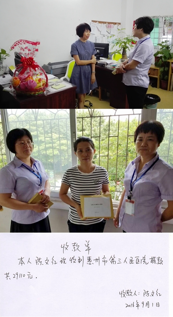同時(shí),我院還為不幸患上重病的一名護(hù)士送上愛心捐款29110元,在接到這筆包含689人愛心的捐款時(shí),她很激動,深深地體會到了醫(yī)院的關(guān)懷,對醫(yī)院的關(guān)心表示感謝和感恩,并表示將醫(yī)院的關(guān)懷變成動力,積極治療,堅(jiān)強(qiáng)的生活下去。(醫(yī)院工會 劉海玲)
