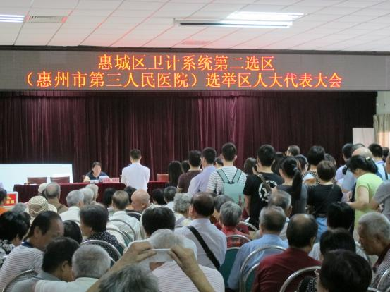 2016年9月21日是惠城區(qū)選舉區(qū)、鎮(zhèn)兩級人大代表投票選舉日。我院作為區(qū)衛(wèi)計系統(tǒng)第二選區(qū),通過召開選舉大會、設(shè)置流動票箱等進行了選舉投票,全院共1454名選民參加了投票選舉。我院選舉大會由區(qū)衛(wèi)計局梁小紅副書記主持。